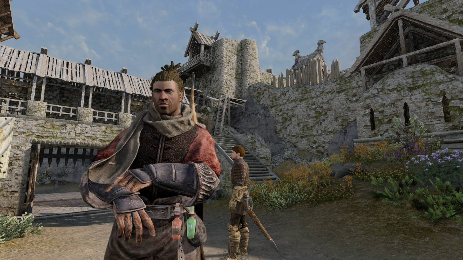 Rahil is a Redguard master duelist and is my canonical Dragonborn in Skyrim- so he doesn't really fit in outside of that setting. I have four other characters that are adaptable (and have been adapted) to other games that I will post eventually, but Rahil's story only plays out there so I am posting it first. Regardless, he mainly uses one-handed swords and wears little armor- light gauntlets and boots if any. He is proficient in smithing and alchemy- mainly to boost his strength- and eventually trains in destruction magic to master a single spell.